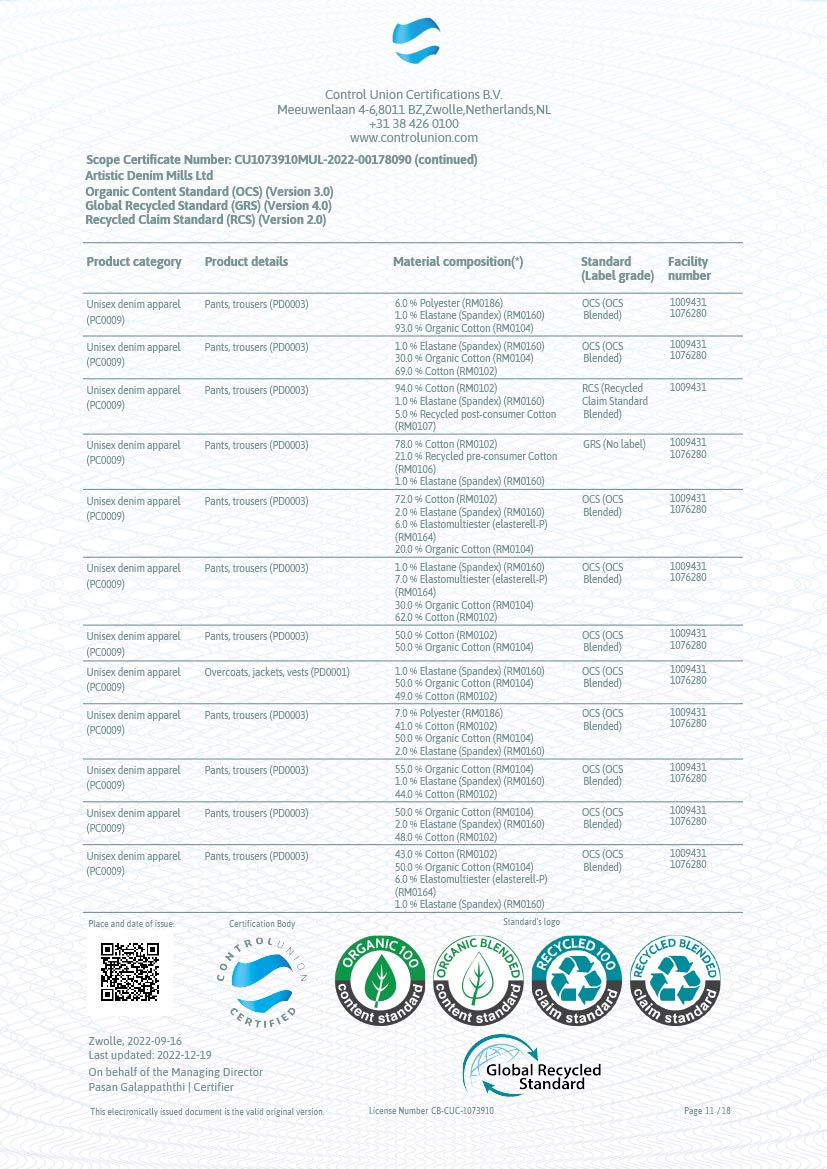 ✔ GOTS - Global Organic Textile Standard
